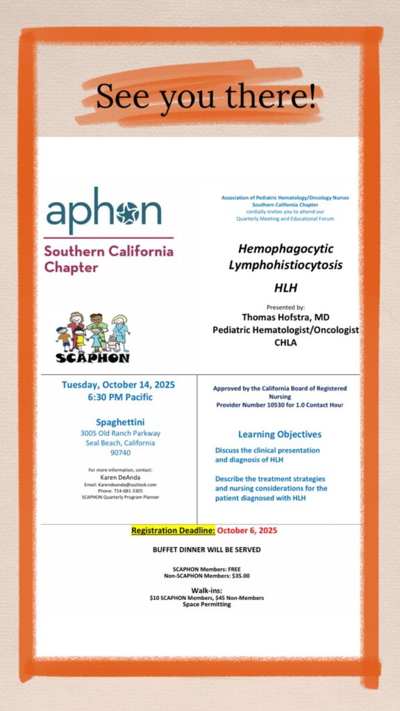 If you have any questions, please contact our Quarterly Program Chair: Karen DeAnda at Kdeanda@choc.org
